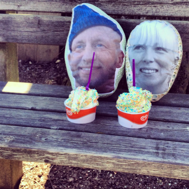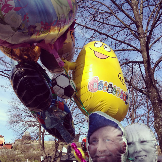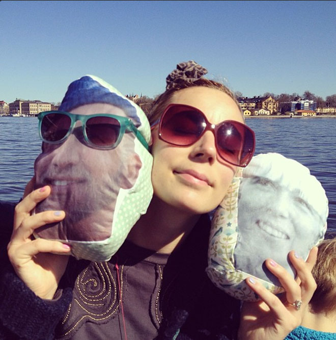 The 1 of May my dear friend Staffan turned 40. His wife Sofia did the same a couple of months earlier. The first weekend of May they where going on a trip to Berlin to celebrate all this with lots of friends but unfortunately me and Erik couldn’t join them because of work. I was at home making pillows the night before them leaving and Staffans actual birthday and then got the idea of making Staffan and Sofia pillows as well. My hubby works just next to where they live so he was going to bring them the gifts. Right before leaving in the morning I asked Erik – can’t you take them out on the subway and ask someone to snap a photo of you with “Sofia and Staffan” next to you? But while speaking it out loud I got an even better idea. Even though they would go to Berlin this wasn’t going to stop me hanging out and celebrate with them. And you know what- we had a blast! I posted all the images on my Instagram under the tag #gillgertz40 (a form of Brangelina name made with their last names). Here is our story!