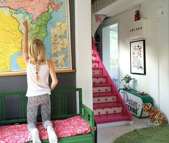 Så här prickig och rosa är vår trappa i Dalarna – hur man fixar en sådan trapp kan ni läsa om i ett gammalt inlägg. Nu är det trappan i stan som ska få sig en släng av sleven och jag har total idé torka. Det är så många färger där nere och Beppe lilla koja som stökar till det. Men jag har bokat en målare nu till helgen när…