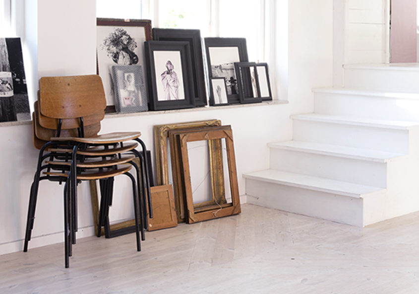 Look at Saba. She loves that little shelf I built for her. From up there she can see far out on the fields. I cleaned out the studio, sorting all my frames. Looks pretty nice like that in a row. I love birds. Need to put some stripes or dots on this rocket. bye for now More “Life at Jenny’s house” here!