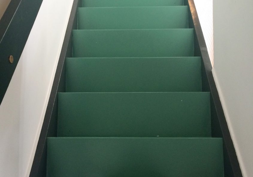 Trappan är nymålad! Här kommer ett litet smakprov! Det gråsvarta är Beckers Orkan & det gröna Alcros Såpa. // Our stairs are finally painted! Here’s a little sneak peak! Xx Isabelle